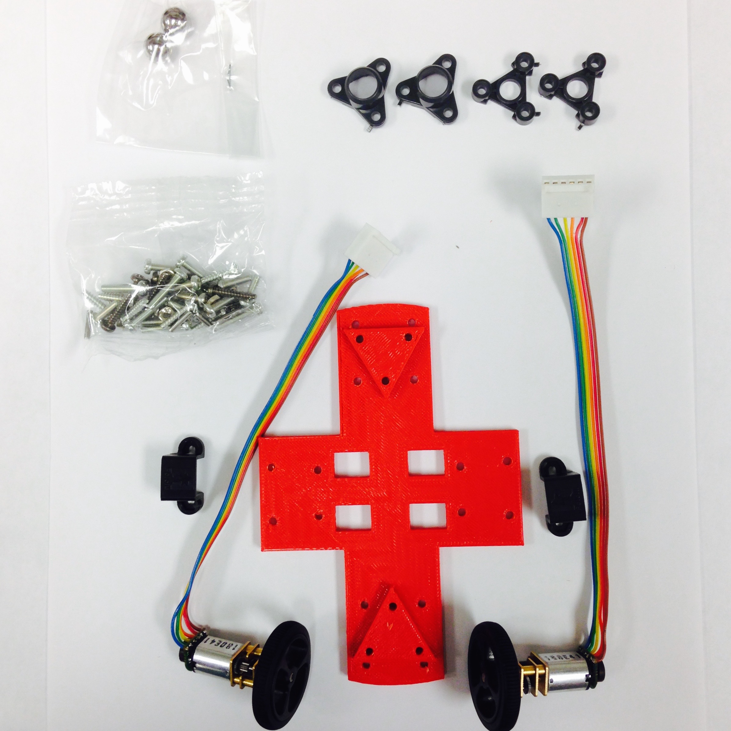 Gather the other necessary components. Two caster assemblies are needed in addition to the two wheel assemblies just created. The parts are shown in Figure 3.2(a).