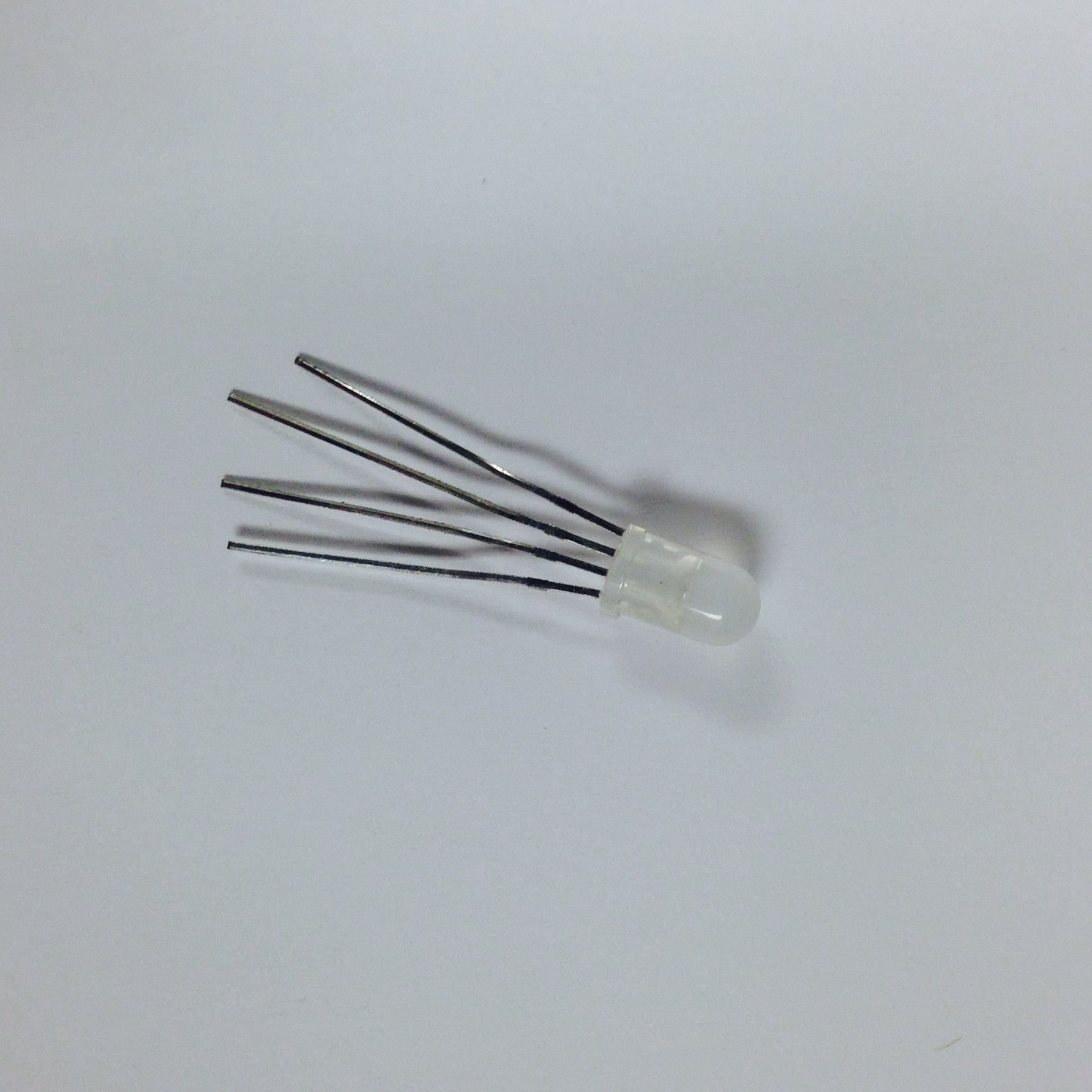 A useful user feedback indicator of Pheeno’s behavior, such as driving, gripping, lifting, etc, is to associate each behavior with an LED color. The holes in each column serve as spots for four multi-color, common anode LED’s. Of course, these bulbs need a manner of attachment to the PCB. The construction of this LED sub-assembly can be seen in Figure 4.4.