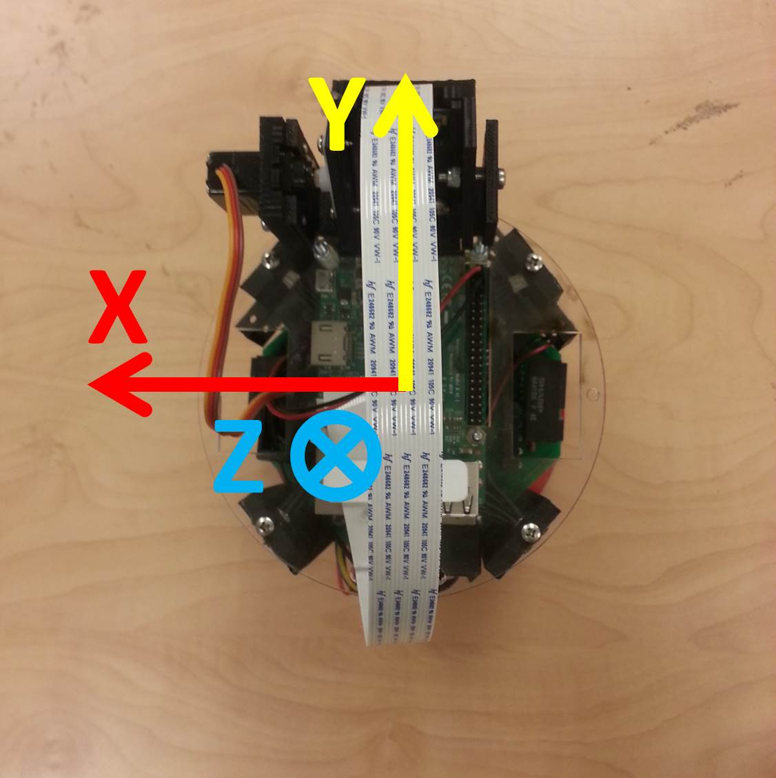 This function returns the accelerometer readings in the x, y, and z directions. These axis with respect to the robot may be seen in Figure 2. The sensor’s measurements are output in cm/s. The output is stored in the variables,